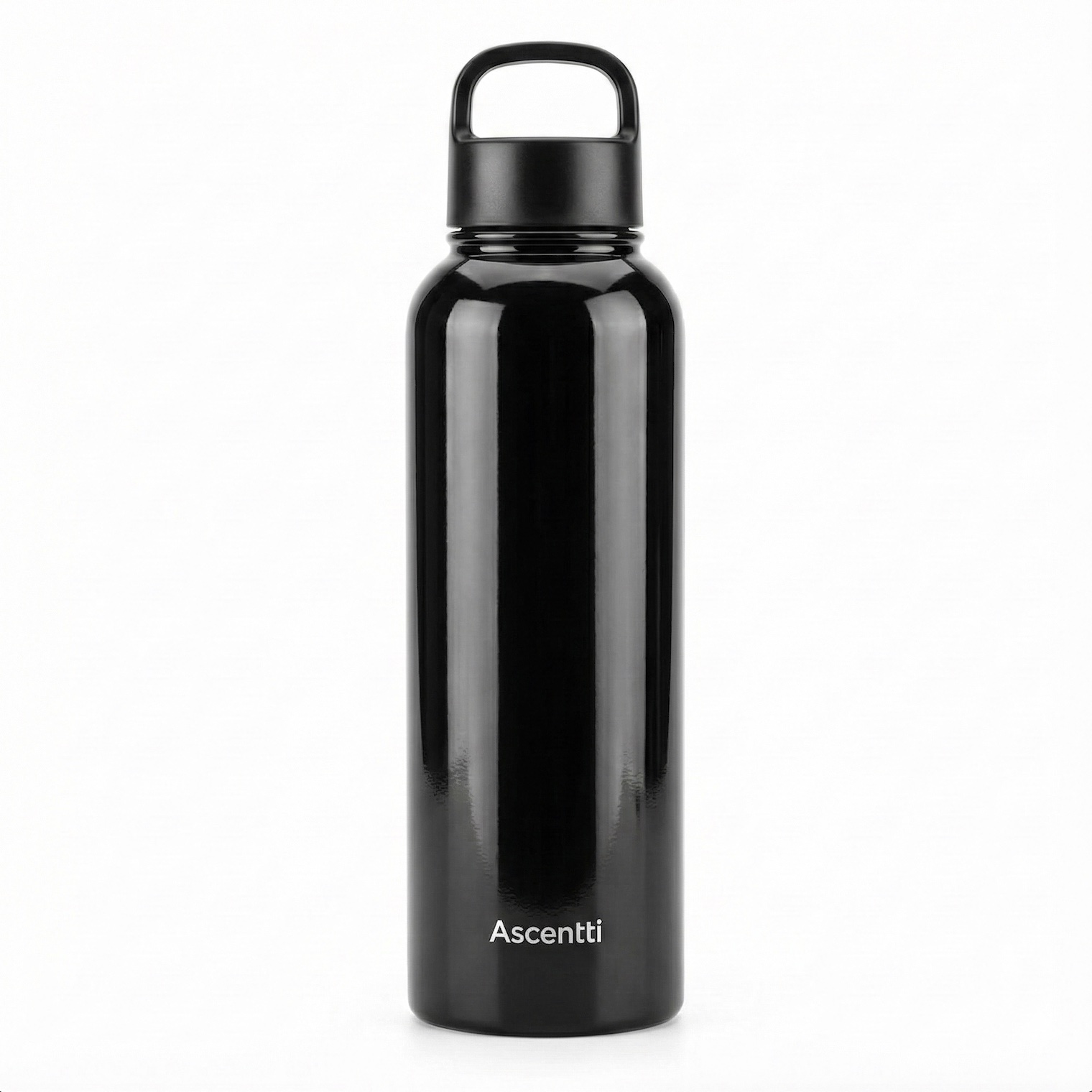 High-performance temperature retention. This double-walled, vacuum-insulated bottle is crafted from food-grade stainless steel to keep beverages ice-cold for up to 24 hours or piping hot for 12 hours. The condensation-free exterior ensures a dry grip, while the airtight cap prevents spills in transit.